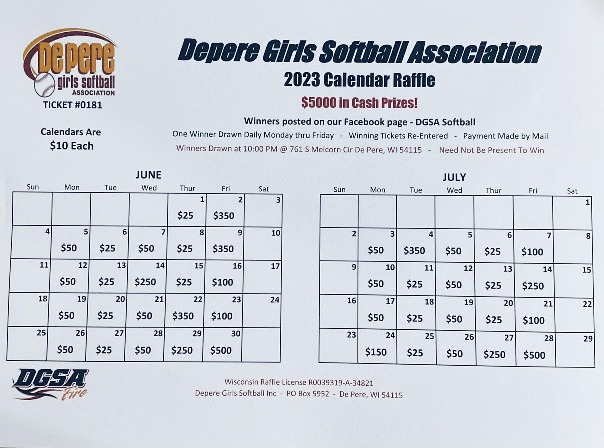 Every player helps support DGSA by selling raffle calendars—10 for summer league players and 15 for tournament team players. Each ticket costs just $10, and proceeds go toward: